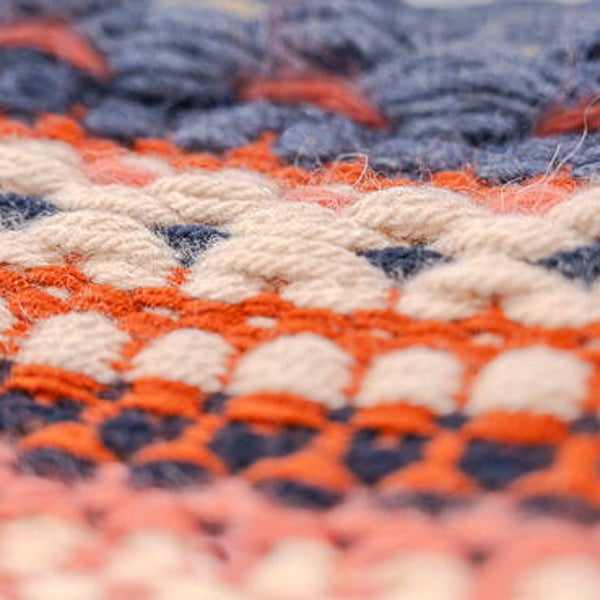 Entièrement réalisé et tissé à la main sur métier, il est composé de pure laine, laine synthétique et coton. Intérieur doublé de toile coton pour plus de douceur.