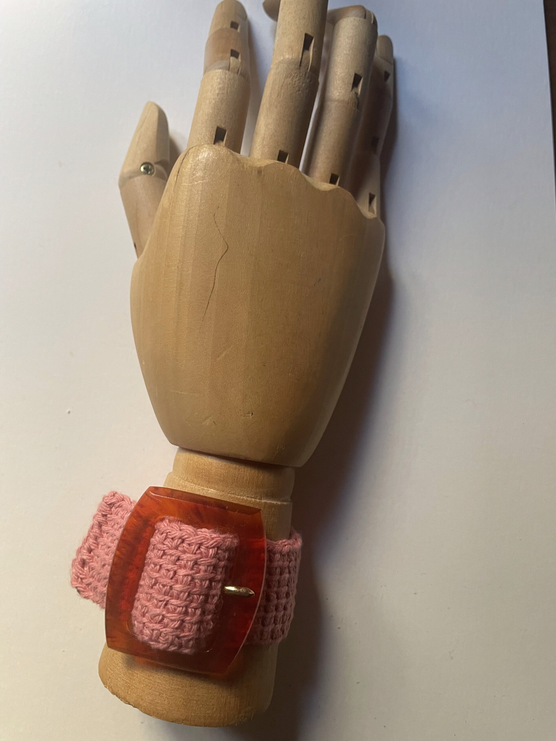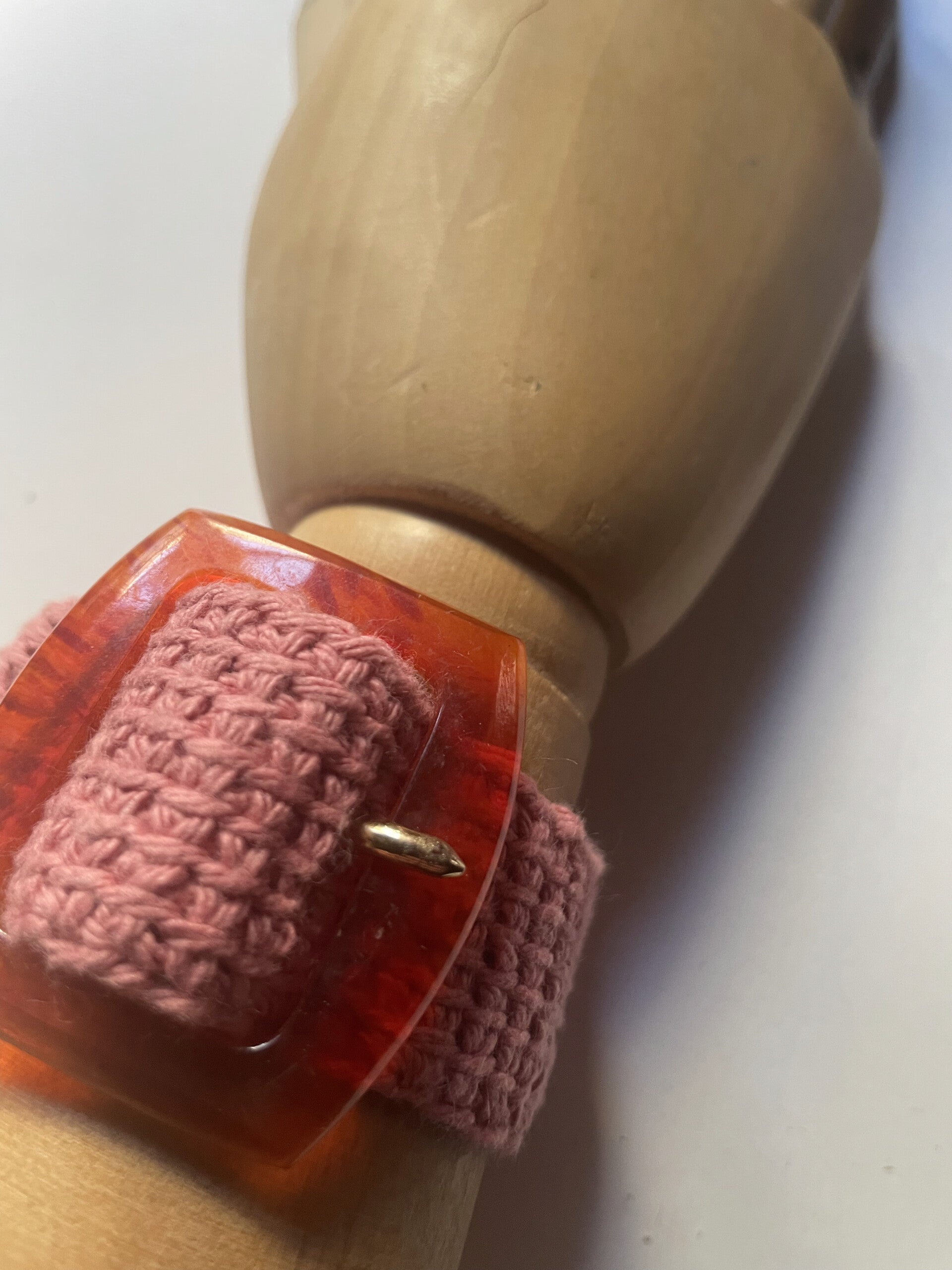 Bracelet fait main au crochet tunisien, réalisé avec des fils soigneusement sélectionnés.