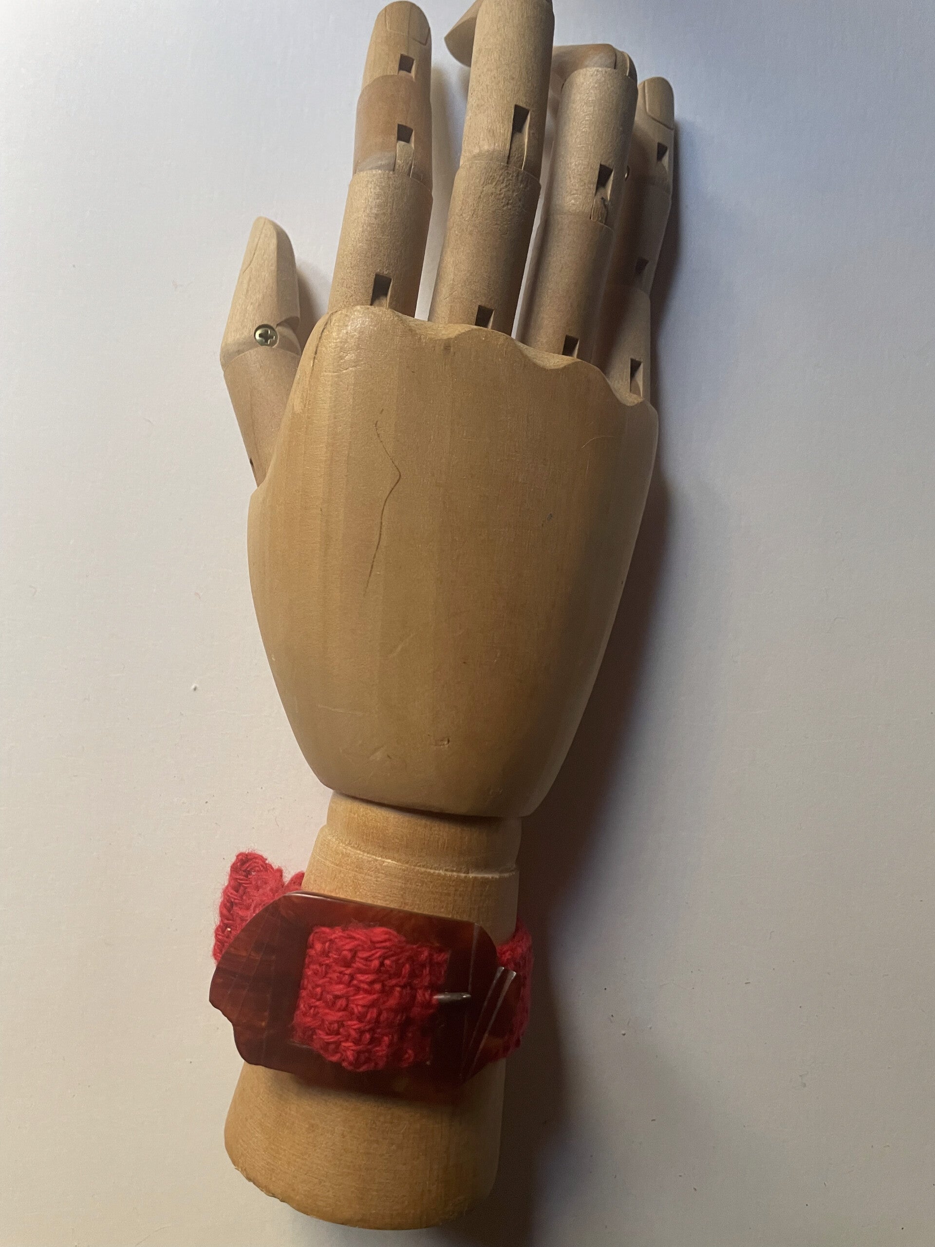 Bracelet fait main au crochet tunisien, réalisé avec des fils soigneusement sélectionnés.