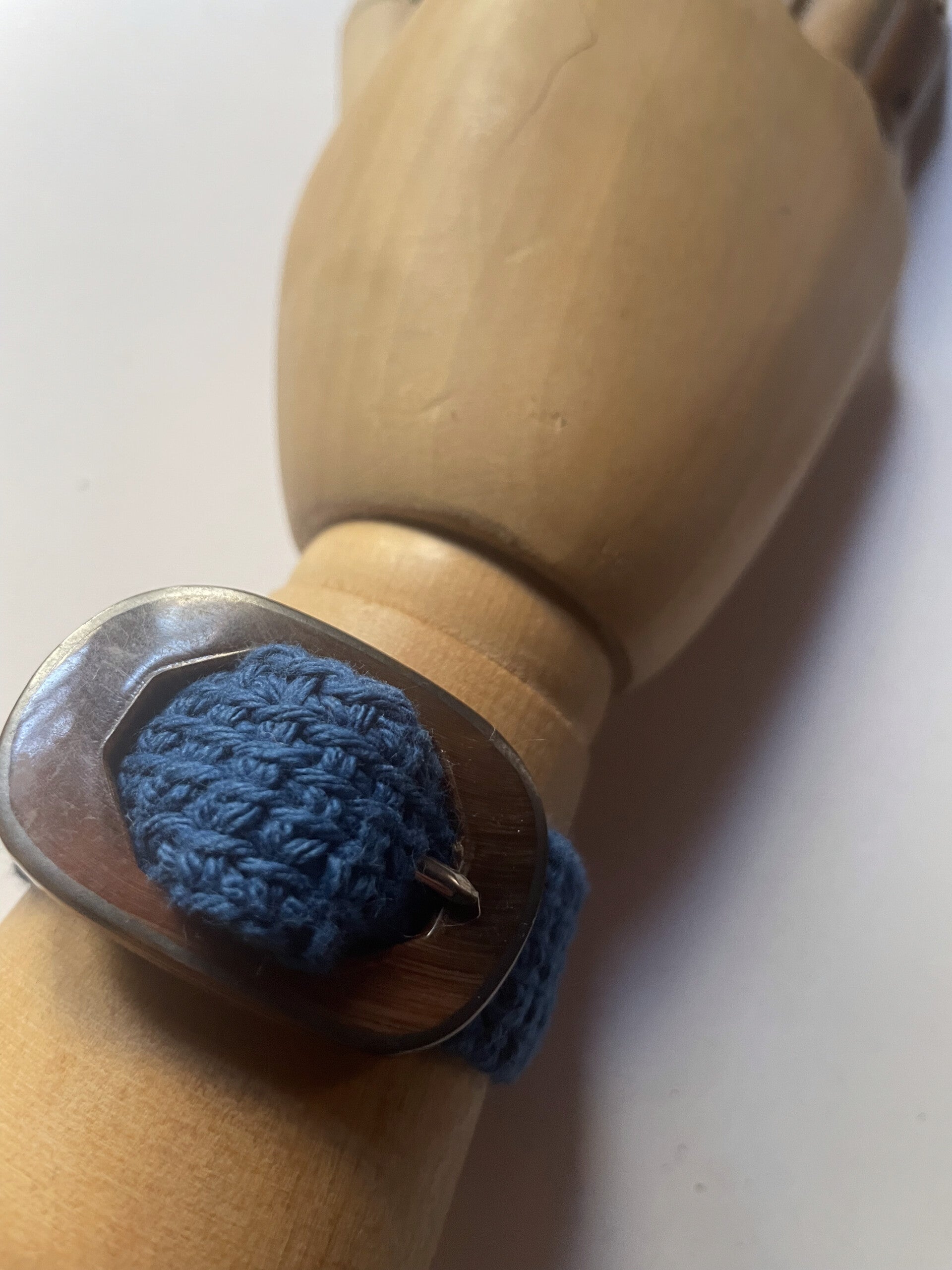 Bracelet fait main au crochet tunisien, réalisé avec des fils soigneusement sélectionnés.
